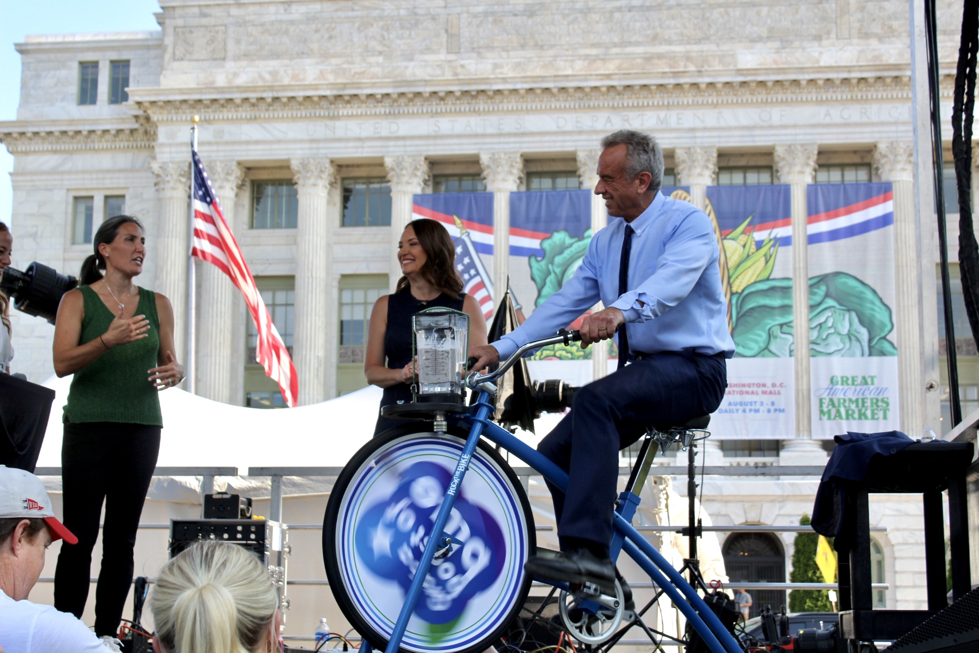 Secretary Kennedy showcased his passion for the Make America Healthy Again movement by jumping on the blueberry smoothie bike to blend a carefully crafted blueberry smoothie that he and Secretary Rollins toasted to on stage.
