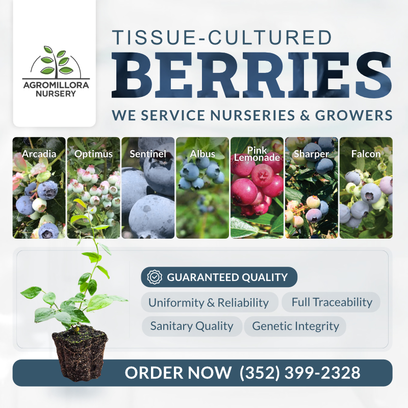 VarietiesSouthern HighbushPrimadonna makes a vigorous, upright bush and tends to be more evergreen than Star and Jewel, possibly because it tends to be more resistant to rust than Star and Jewel. It also tends to flower before it makes new leaves, which can be a serious problem if it does not produce enough early leaves to support development of fruit. It is also somewhat susceptible to root rot and stem blight. It requires 300 chill hour units. Emerald is a vigorous bush with a growth habit midway between upright and spreading. Flowers open uniformly and it produces abundant leaves even after mild winters. Emerald is very capable of carrying heavy crops. Berries are large and firm with a good picking scar and have a sweet flavor. Color is medium to dark blue. There are no real problems with Emerald, root rot, stem blight and cane canker have not been too serious.[/important]Emerald is a vigorous bush with a growth habit midway between upright and spreading. Flowers open uniformly and it produces abundant leaves even after mild winters. Emerald is very capable of carrying heavy crops. Berries are large and firm with a good picking scar and have a sweet flavor. Color is medium to dark blue. There are no real problems with Emerald, root rot, stem blight and cane canker have not been too serious. Star is a low chill southern highbush variety that requires 300-600 chill hour units. Star flowers later than Sharpblue, but ripens at the same time. The berries are large and have excellent scar and firmness. The plant is medium in vigor and has a upright growth habit. It is as resistant or better than Sharpblue with root rot, stem blight and leaf fungal diseases. Windsor is an early ripening and early flowering highbush with high yield potential and large berry size. It is very vigorous with stout stems and a semi-spreading growth habit. It may abort some or all of its flower buds after mild winters. Berries have good firmness and flavor, but picking scar is variable. Windsor has above average resistance to leaf-spotting organisms and moderate resistance to root rot. Jewel has a moderately low chill requirement. It is an early ripening and high quality berry. Jewel produces a large number of flower buds but leafs well in the spring. Vigor is about equal to Sharpblue, but Jewel is shorter and more spreading. Berry quality is excellent but tends to be tart until fully ripe. Jewel is moderately susceptible to root rot. Springhigh is a low chill variety intended for early season production. Springhigh produces a vigorous, upright bush with limited suckering from the base. It does not tend to be twiggy. It produces numerous flower buds in the fall and is capable of heavy flowering in the spring. Springhigh leafs well, shortly after the time of full bloom. It has good resistance to phytophthora root rot, stem blight, along with good leaf disease resistance. Springhigh has a large berry that ripens in early spring and has good scar, firmness and flavor. It is also somewhat dark in color. Springwide is a low chill variety intended for early season production. It ripens early in the spring and has a spreading bush habit and is medium in vigor. The plant has excellent leafing in the spring. The berries ripen early and are large, with good scar, firmness and flavor. It needs cross pollination for high fruit set and good berry size. The plant has medium to good resistance to phytophthora root rot, cane canker and stem blight. Santa Fe is a low chill highbush that is adapted to the 300-500 chill hour units. It produces a vigorous, upright bush. The branches are stout and rather than twiggy. It has better resistance to root rot, cane canker and stem blight than other varieties. Berries are the same size as Sharpblue with a lighter blue color. The scar and firmness are excellent. Sweetcrisp is a vigorous, low-chill variety that has a very sweet, crisp-textured berry. Its structure is midway between upright and spreading. Sweetcrisp makes only a medium number of flower buds therefore, yield per bush may be lower than Jewel or Emerald. Berry size is similar to Star, but is more variable. The picking scar is good and has a medium blue color. Sweetcrisp is more prone to rain splits. Camellia is an early-to-mid season highbush. It has highly favorable attributes, especially fruit color, size and plant vigor. It has a 400-450 chill hour unit requirement. Abundance is a low-chill, very vigorous bush with an up-right habit. Abundance produces a large number of flower buds in the fall and flowers heavily in the spring. It flowers early and leafs shortly after. The berry is large and has medium blue color and good firmness and flavor. O’Neal is early-ripening and has a vigorous upright bush that does not flower excessively. It flowers for a long time, probably because of lack of chilling. Leafing is usually delayed. Plants are susceptible to cane canker. Berries are large and of high quality, but does not get enough chilling to succeed commercially. Rebel is an early ripening highbush and has better berry size, plant vigor and is earlier than Star. It has a chill hour unit requirement of 400-450 hours. It has highly favorable size, scar and vigor. Palmetto is a vigorous variety with a spreading bush habit and narrow crowns. Requires 350-450 chill units. Plants are self-fertile, but should be interplanted for cross-pollination to increase pollination, yield, quality and size. Dixieblue is vigorous and productive and somewhat spreading and round in shape, as well as of medium height. Fruit is medium to large size, flat in shape, and have good flavor, color and firmness, with small picking scars. Dixieblue bloom rather late but ripen quickly. It should also be interplanted for cross-pollination. Gupton is vigorous and productive and have an upright growth habit. Berries are medium to large in size, with good flavor, color and firmness and have small picking scars. Bloom occurs relatively late. It is highly recommended to 